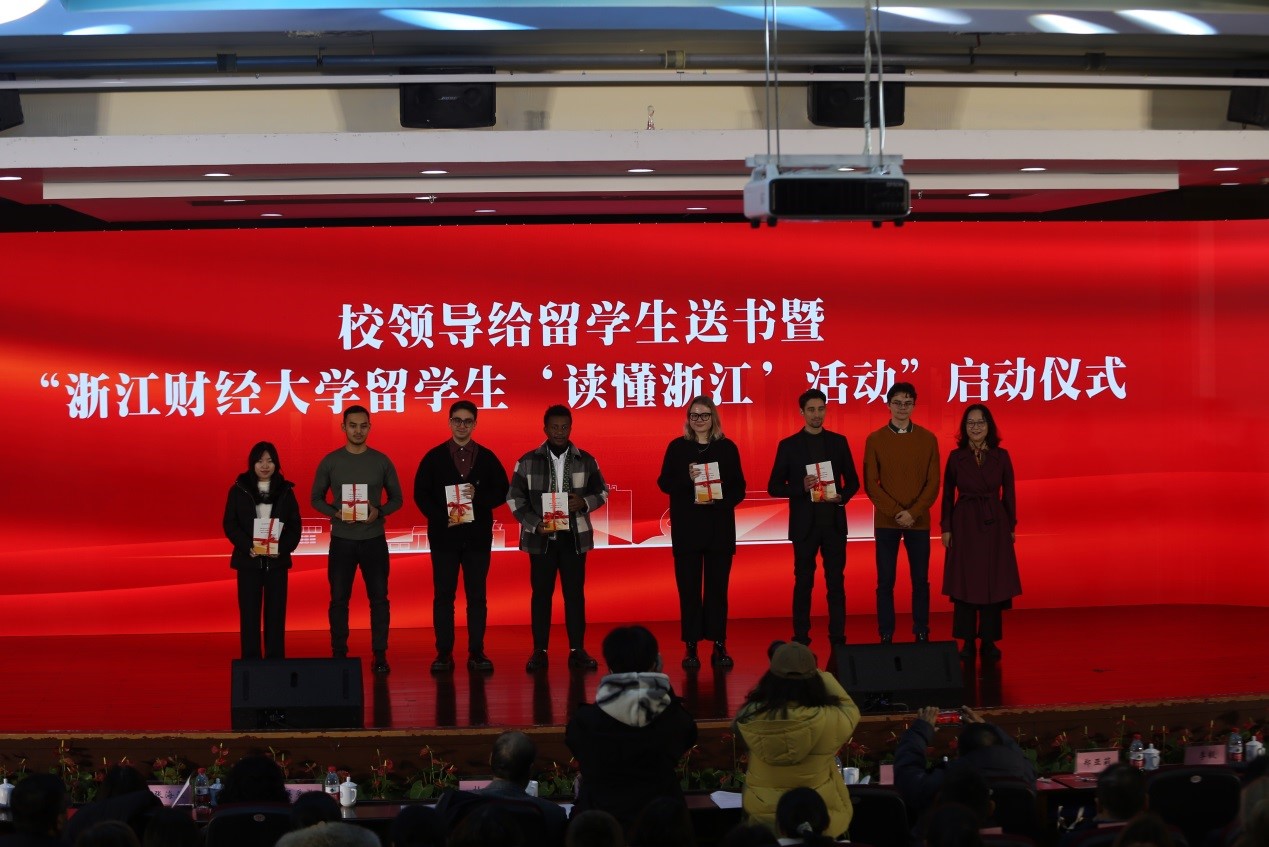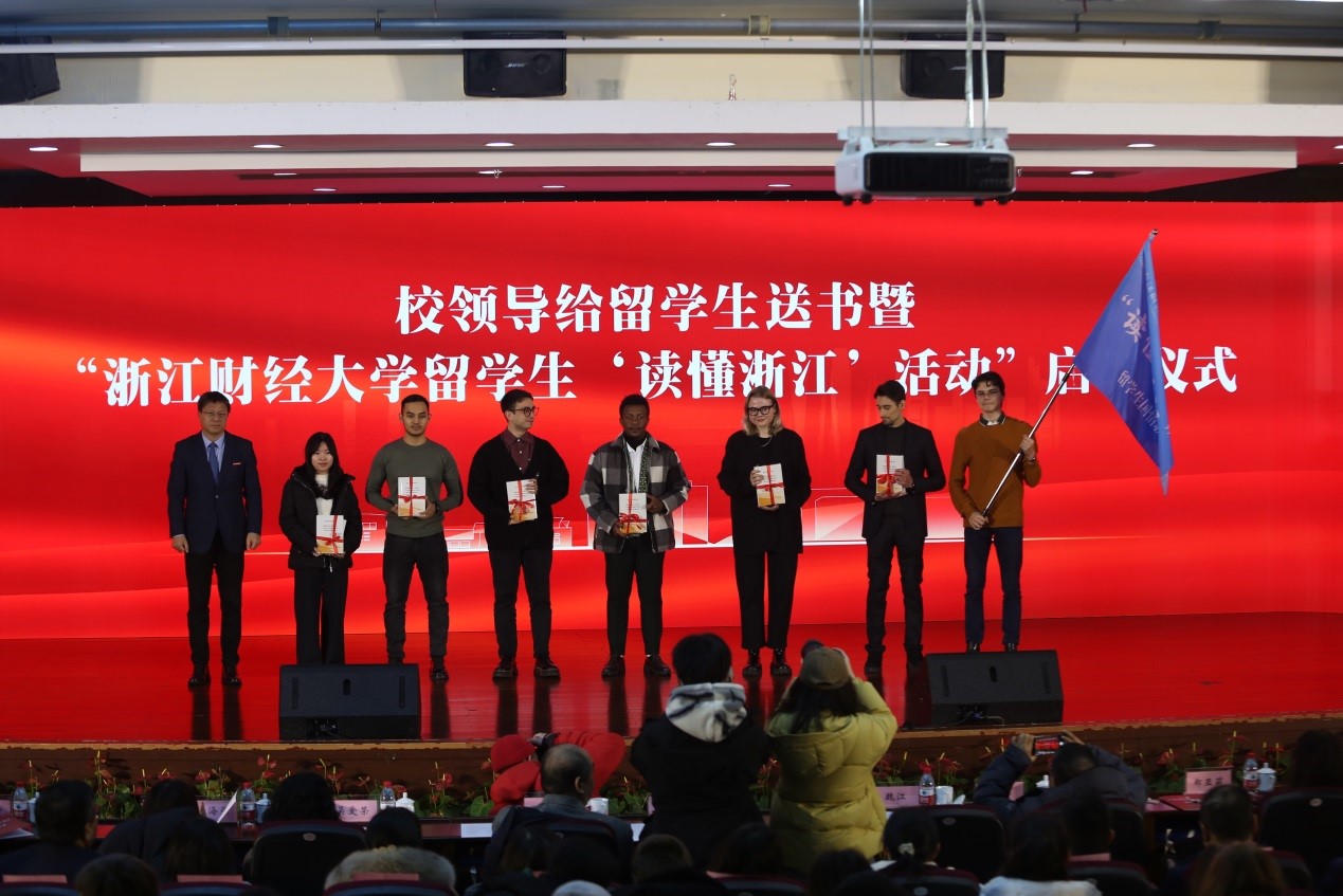 活动举行了给留学生送书与留学生“读懂浙江”活动启动仪式。党委副书记、副校长(主持行政工作)魏江亲手将“读懂浙江”的留学生国情教育活动旗交到留学生手里,让留学生多走进浙江、了解浙江。郑亚莉副校长给留学生代表赠送了《之江新语(Zhejiang,China:a new vision of development)》等书籍,让留学生多读书了解中国。留学生还为天美传媒