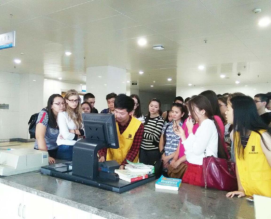 学生助理的共同讲解下,留学生掌握了图书馆使用方法。