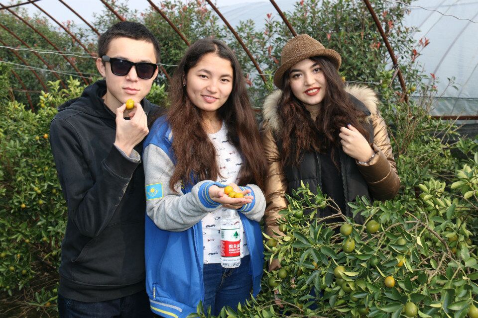师生们兴致勃勃地来到了此行的第一站——杨家墩村,风景秀美的田野风光吸引了留学生们的目光,在当地农民的带领下,大家到田地里采摘了水果玉米与金桔,吃着自己亲手采摘的劳动成果口感特别香甜。