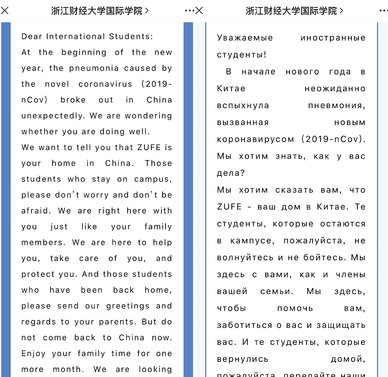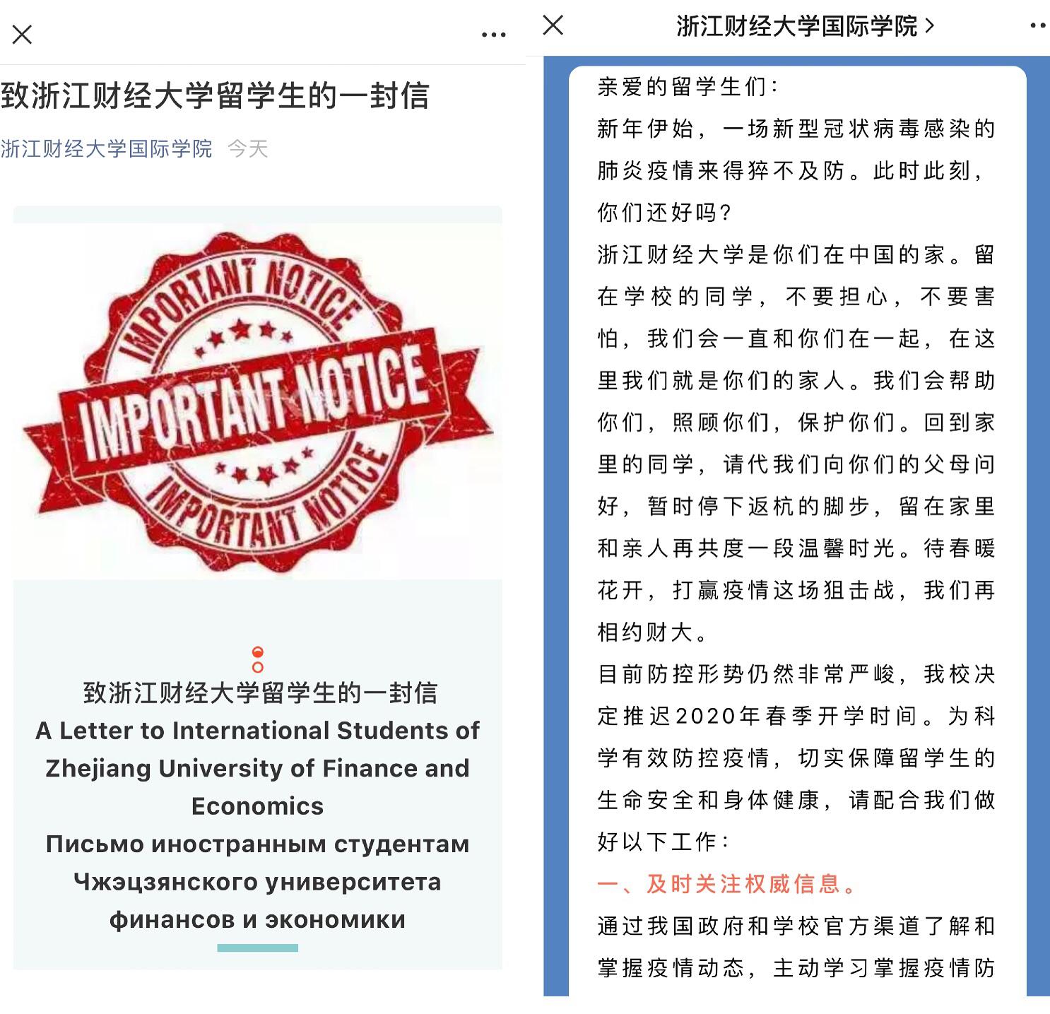 给留学生们写了一封热情温暖的长信,为了让每位学生都清楚了解新冠肺炎疫情动态及天美传媒