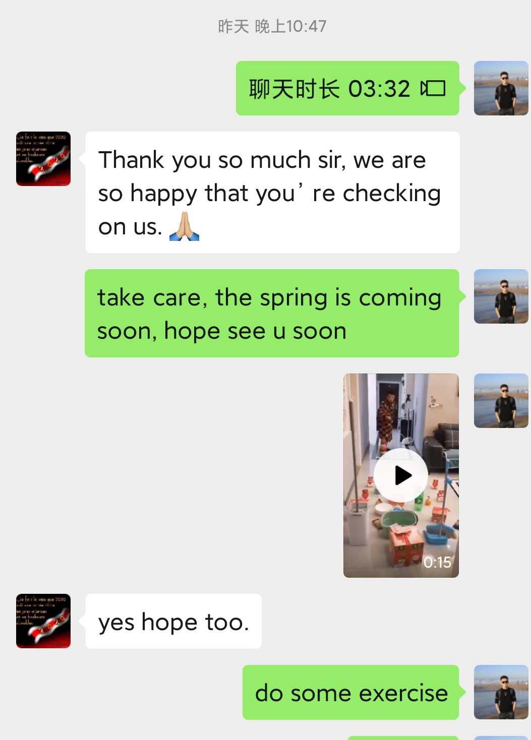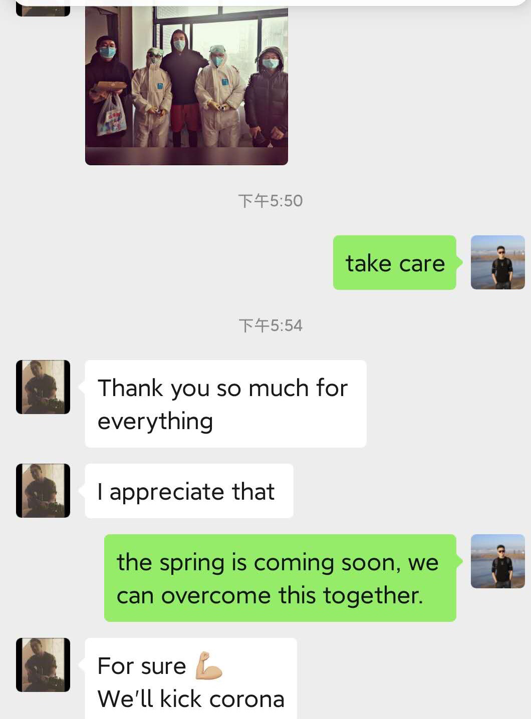 老师对留学生们深切的关爱。看到夜以继日奋战的医务人员、不辞辛劳的各战线工作者、和送温暖的老师们,留学生们都对中国和中国人民战胜疫情充满信心。他们一起为中国祈祷,加油中国,我们和你在一起!