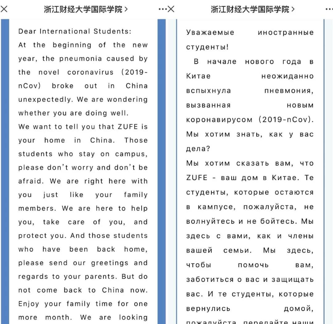 给留学生们写了一封热情温暖的长信,为了让每位学生都清楚了解新型冠状病毒感染肺炎疫情动态,以及天美传媒