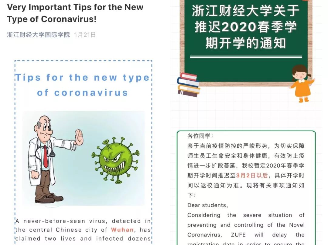 推迟开学及相关工作安排等。此外,还积极引导留学生进行自我防控,保持良好的卫生习惯,注意保持室内环境卫生,正确佩戴口罩、勤洗手、勤通风、打喷嚏捂口鼻等。
