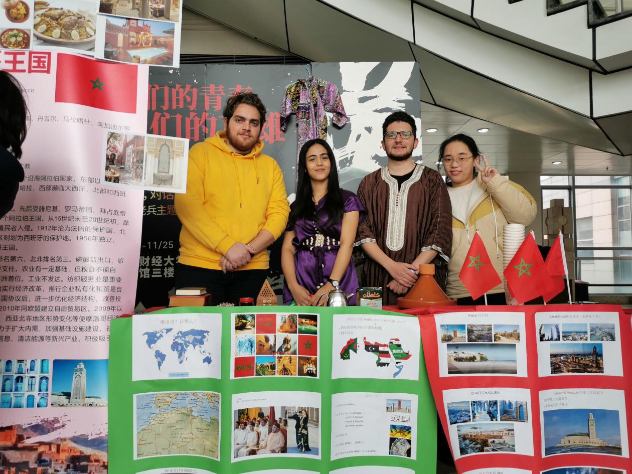 11月28日,来自俄罗斯、印度尼西亚、哈萨克斯坦、摩洛哥和乌兹别克斯坦5国的留学生们在图书馆二楼大厅设置了风情展位,通过海报展板、服装实物、游戏活动、美食百汇、乐器表演、现场问答等形式展示自己国家的独特文化和风土人情。