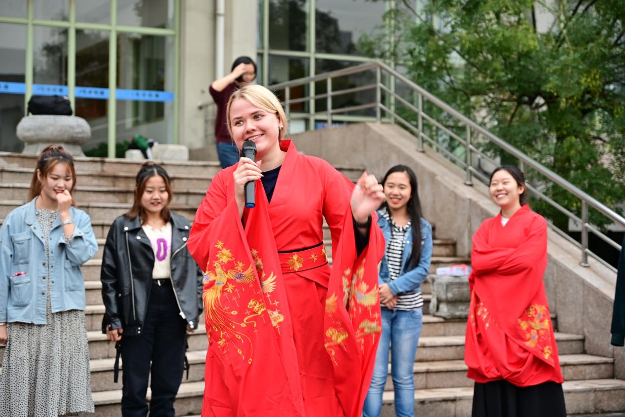 拿到纸条的同学们也毫不怯场,纷纷亮出自己的拿手绝活。留学生和汉教班的学生们也都分享了自己最喜欢的诗歌。