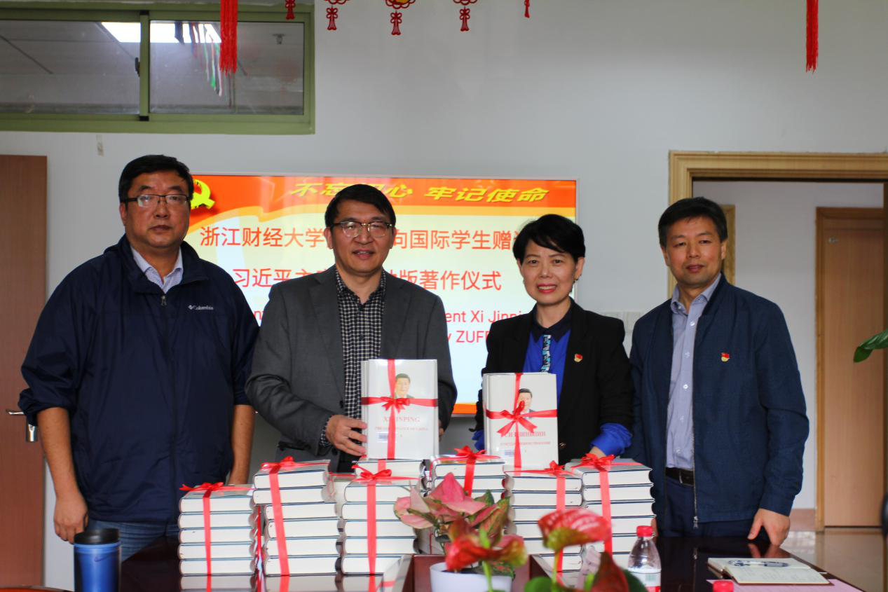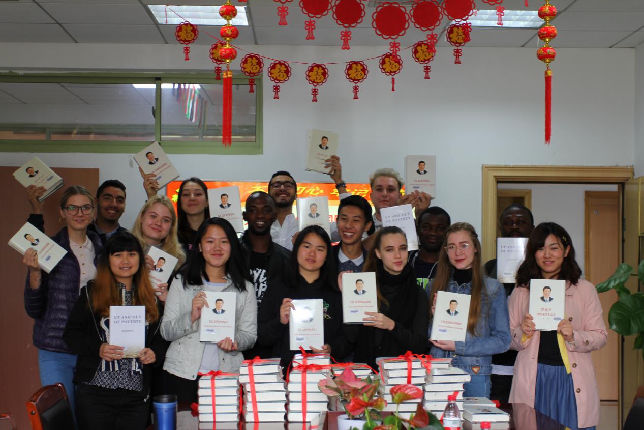 ,向留学生赠送习近平主席多语种版著作。此次赠书包含《习近平谈治国理政》(第1、2卷)、《之江新语》、《摆脱贫困》、《习近平谈“一带一路”》4部著作、9个语种版本的82册,来自法国、日本、俄罗斯、摩洛哥、印度尼西亚、加纳、乌兹别克斯坦、哈萨克斯坦等国的20多位留学生参加。