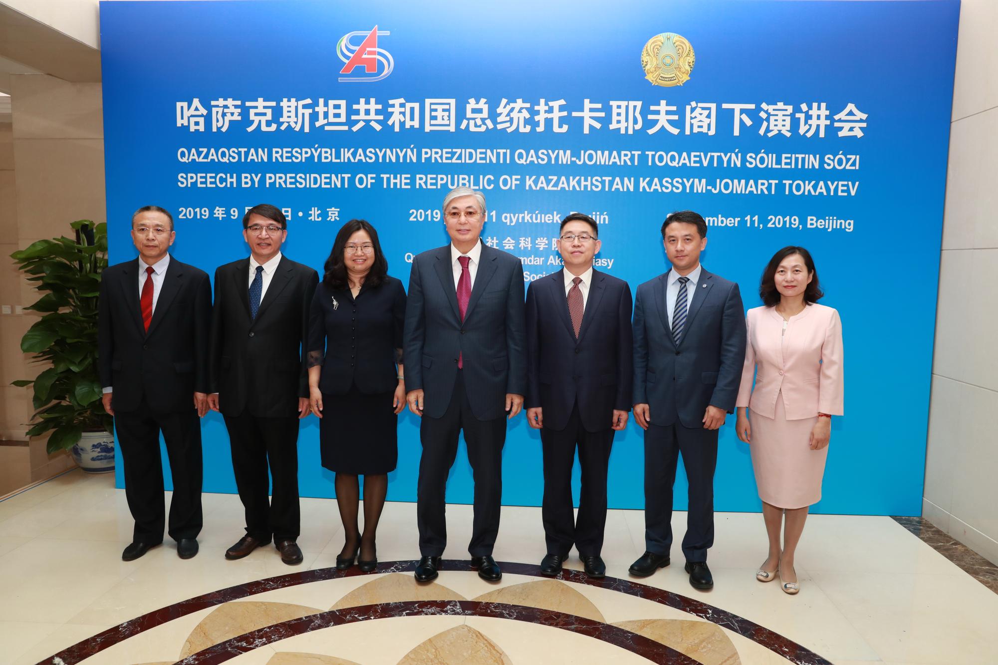 教师余慕鸿教授受邀参加哈萨克斯坦共和国总统托卡耶夫在中国社科院的演讲会,并与总统合影。
