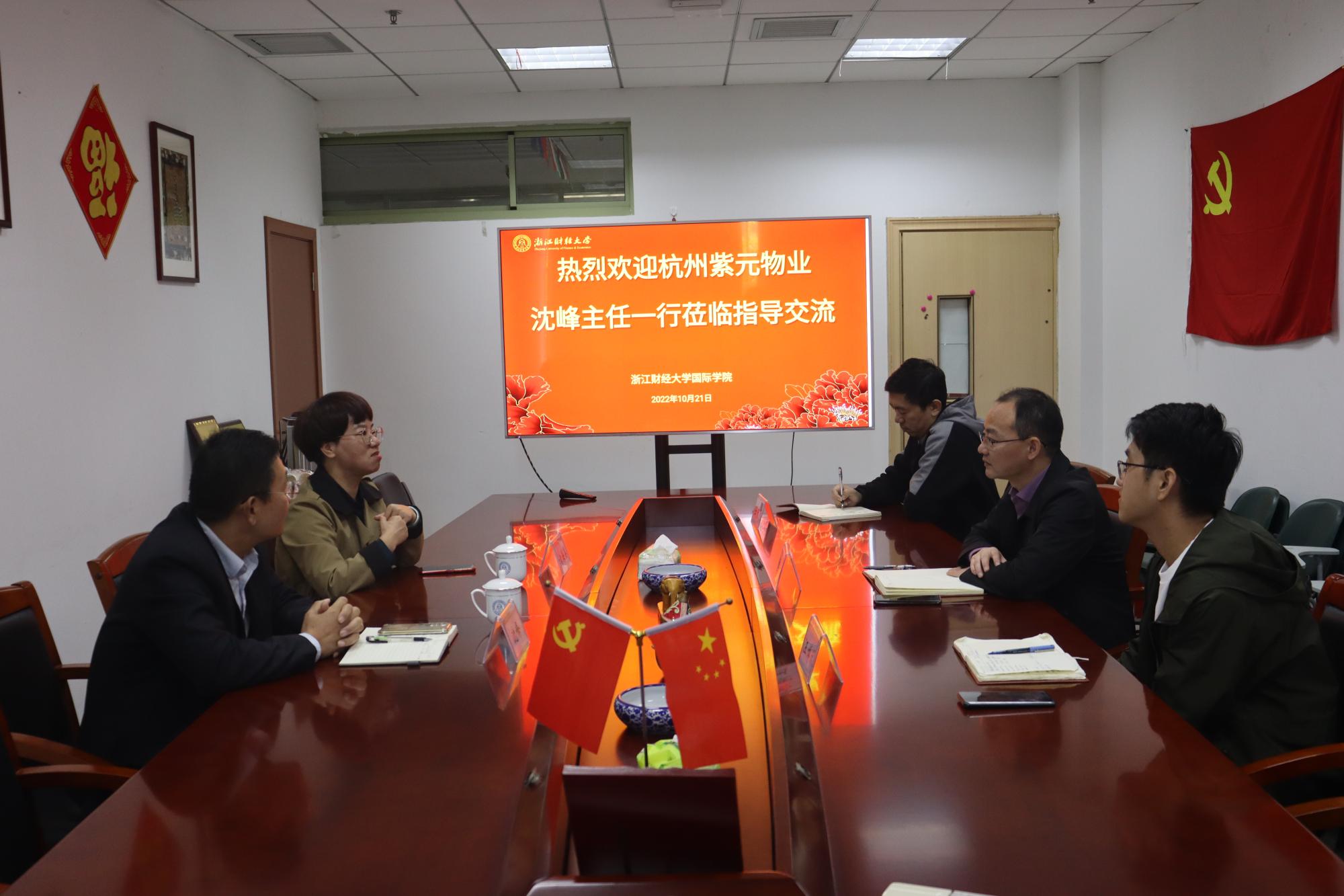 10月11日上午,天美传媒 与杭州紫元物业下沙服务处进行了交流。紫元物业下沙服务处主任沈峰、天美传媒 院长柴志贤,相关宿舍管理人员参加交流。