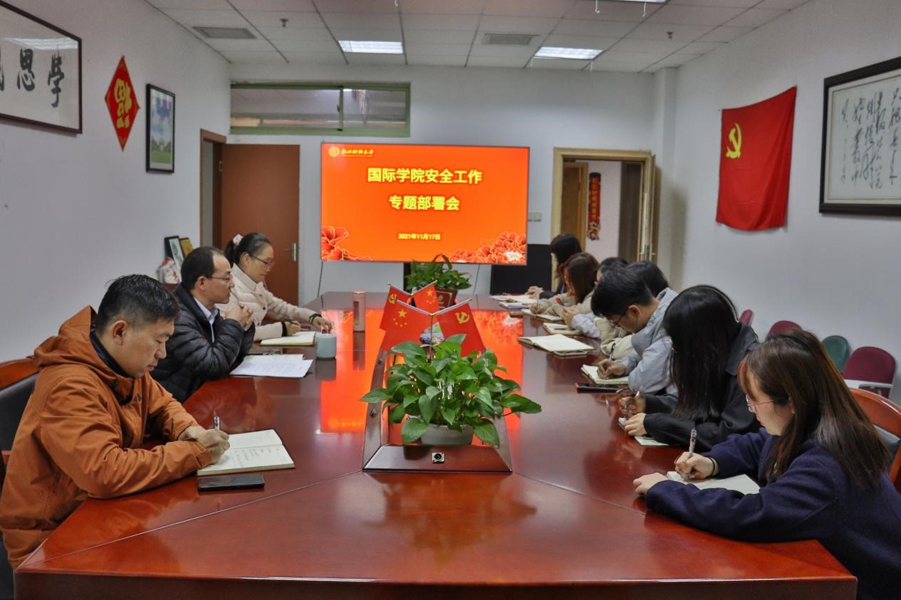 接下来的安全工作,分别从意识形态安全、留学生校内外住宿管理、疫情防控、交通安全、火灾防控等方面进行了全面部署,确保留学生各项管理工作的落实到位,全力维护校园的安全稳定工作。
