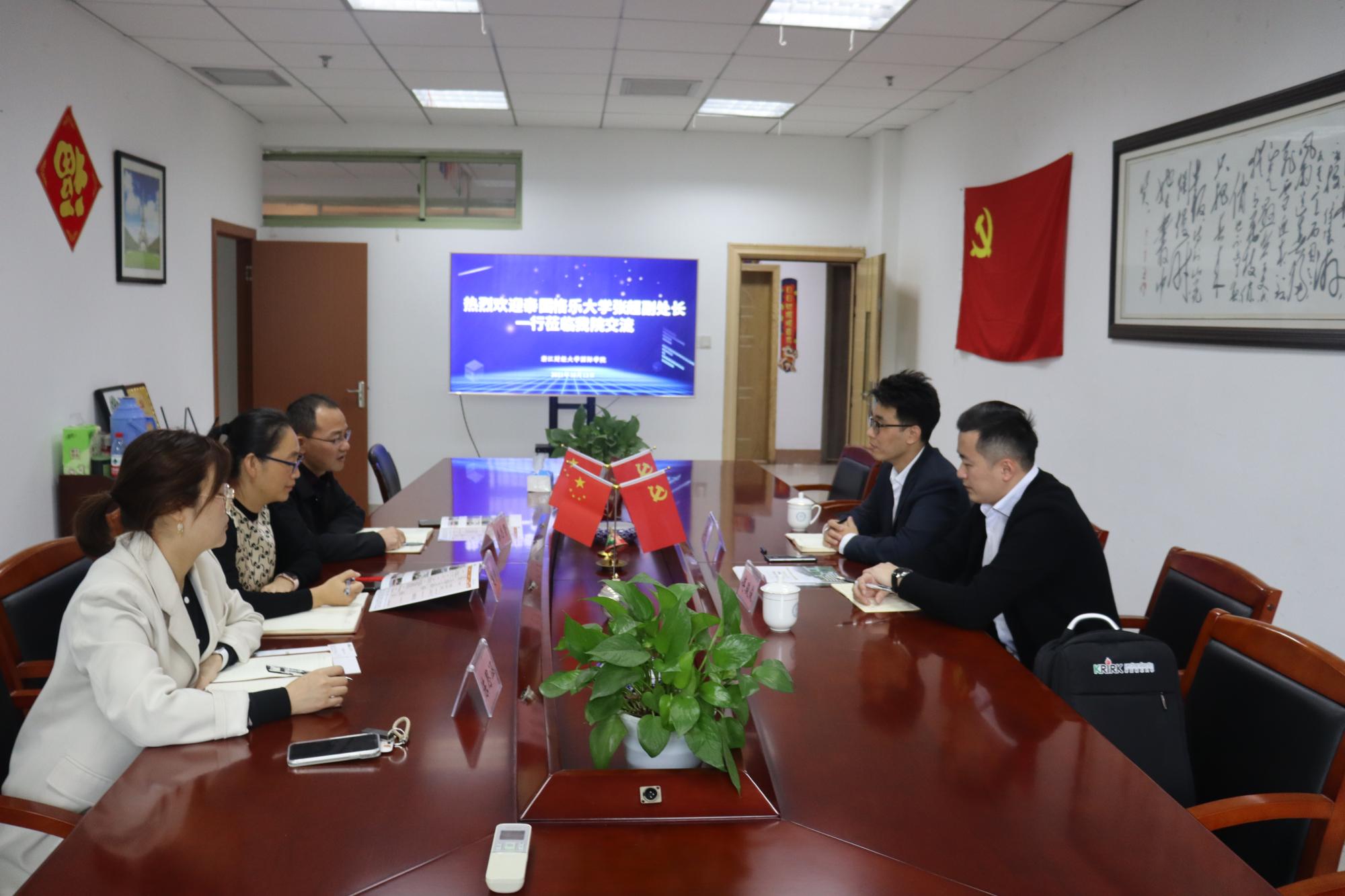 10月13日,泰国格乐大学国际交流处副处长张超一行来天美传媒 交流国际学生招生事宜。天美传媒 天美传媒 副院长柴志贤、院长助理赵倩、留学生招生负责人陈思涵出席会议。