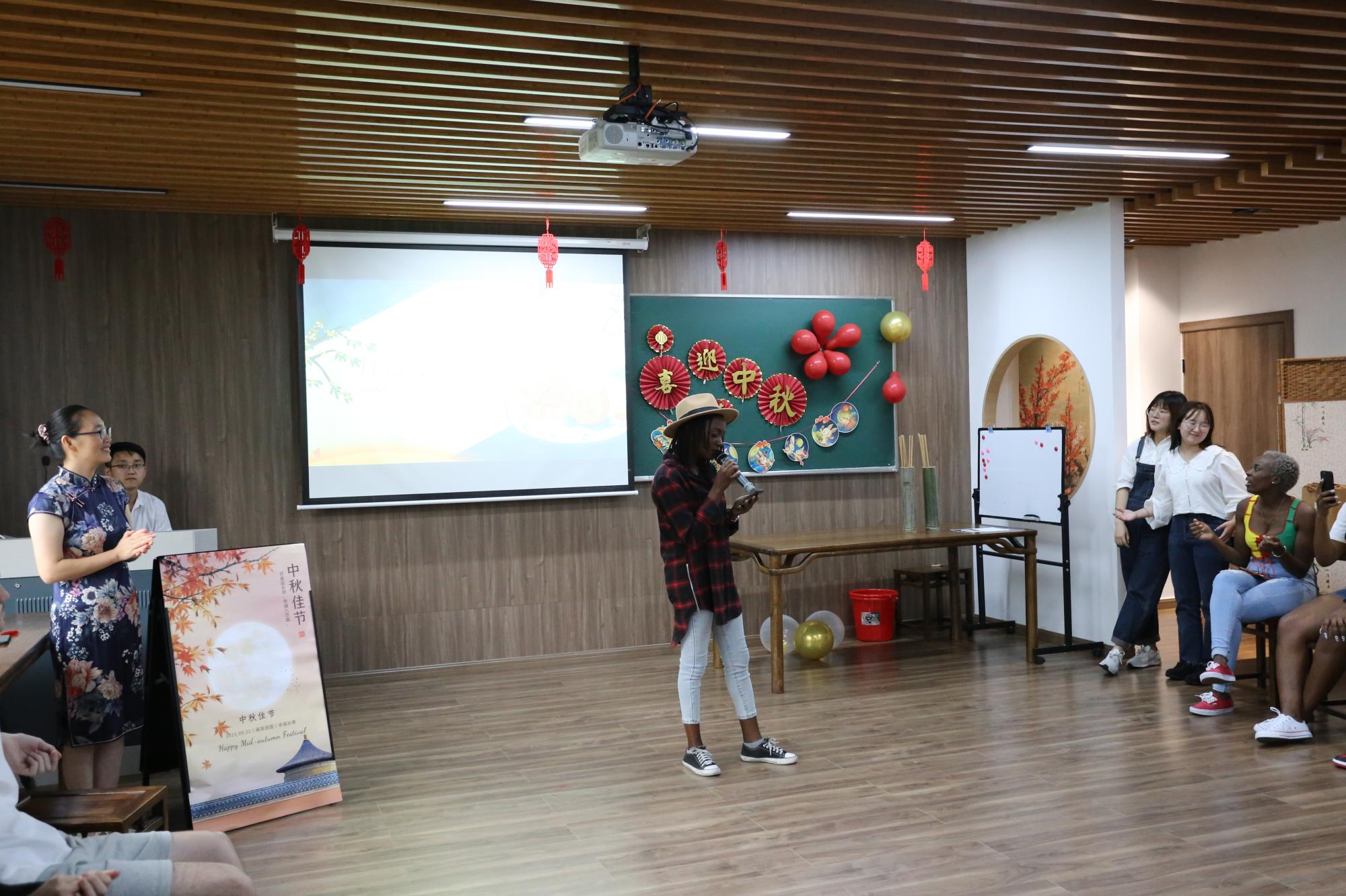 老师与来自世界各国三十余名留学生一起,共话中秋情,共叙师生谊。
