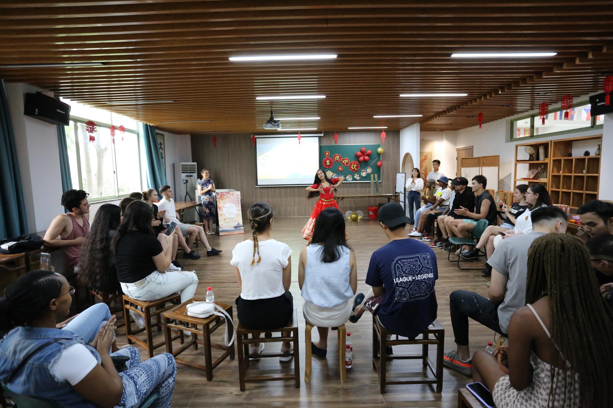 来自秘鲁的留学生Karla身着红色长裙,倾心演绎了热情动人的印度舞《Nagada》,将联欢推上高潮。来自赞比亚的留学生Tasha用中文,给大家带来了《月亮代表我的心》,曲调婉转柔美,编曲别出心裁,勾起了留学生们的思乡、思亲、思友之情。