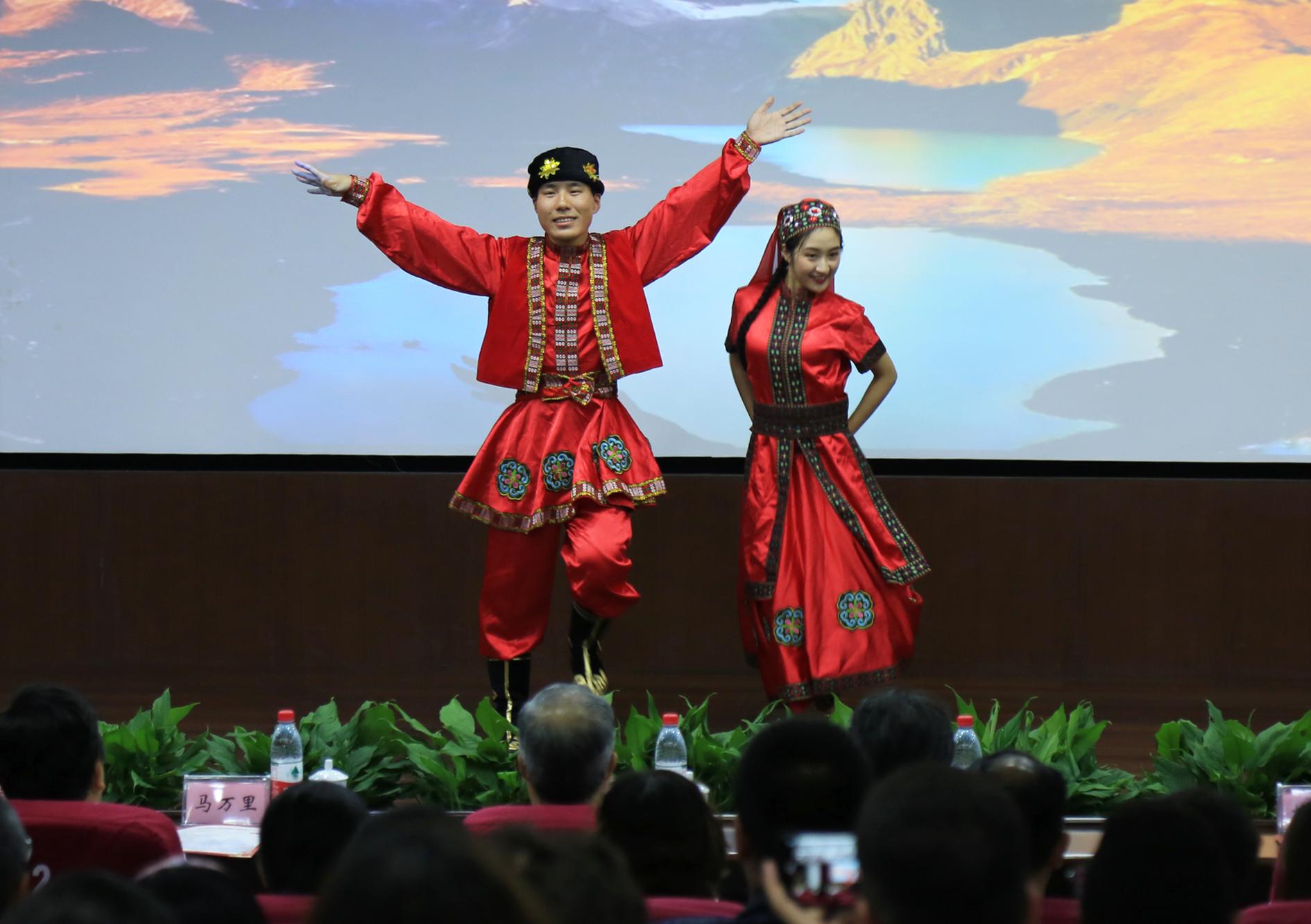 开幕式里,来自世界各国的留学生与中国学生一起,为观众带来了精彩的文艺表演,迎来台下阵阵掌声。校艺术团表演的民族舞蹈《帕米尔之情》热情奔放,校十佳歌手NYAMBE TASHA NATASHA与同伴带来的情歌对唱《因为爱情》婉转悠扬,毋丹老师演唱的越剧选段《西湖山水还依旧》余音缭绕,中外学生共同带来的诗歌朗诵气势磅礴。《妙笔琴韵》中,中国书法、古筝以及小提琴相互配合,别有韵味。在中外学生热情洋溢的合唱《相亲相爱》中,开幕式落下帷幕。
