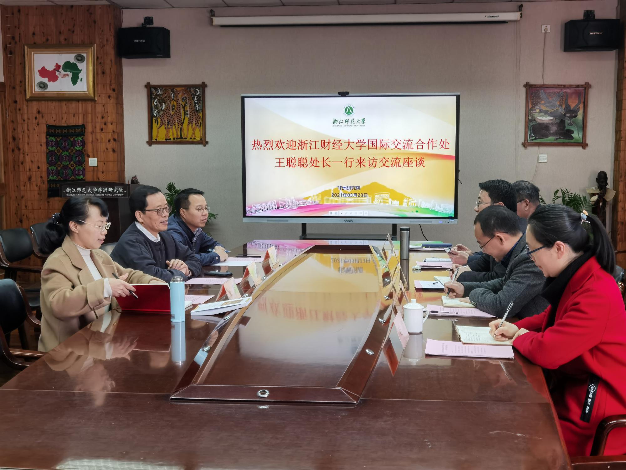 国际交流合作处处长王聪聪一行赴浙江师范大学非洲研究院调研交流。浙江师范大学非洲研究院院长刘鸿武、党总支书记王珩、国际交流与合作处副处长毛锡龙参加本次座谈活动。