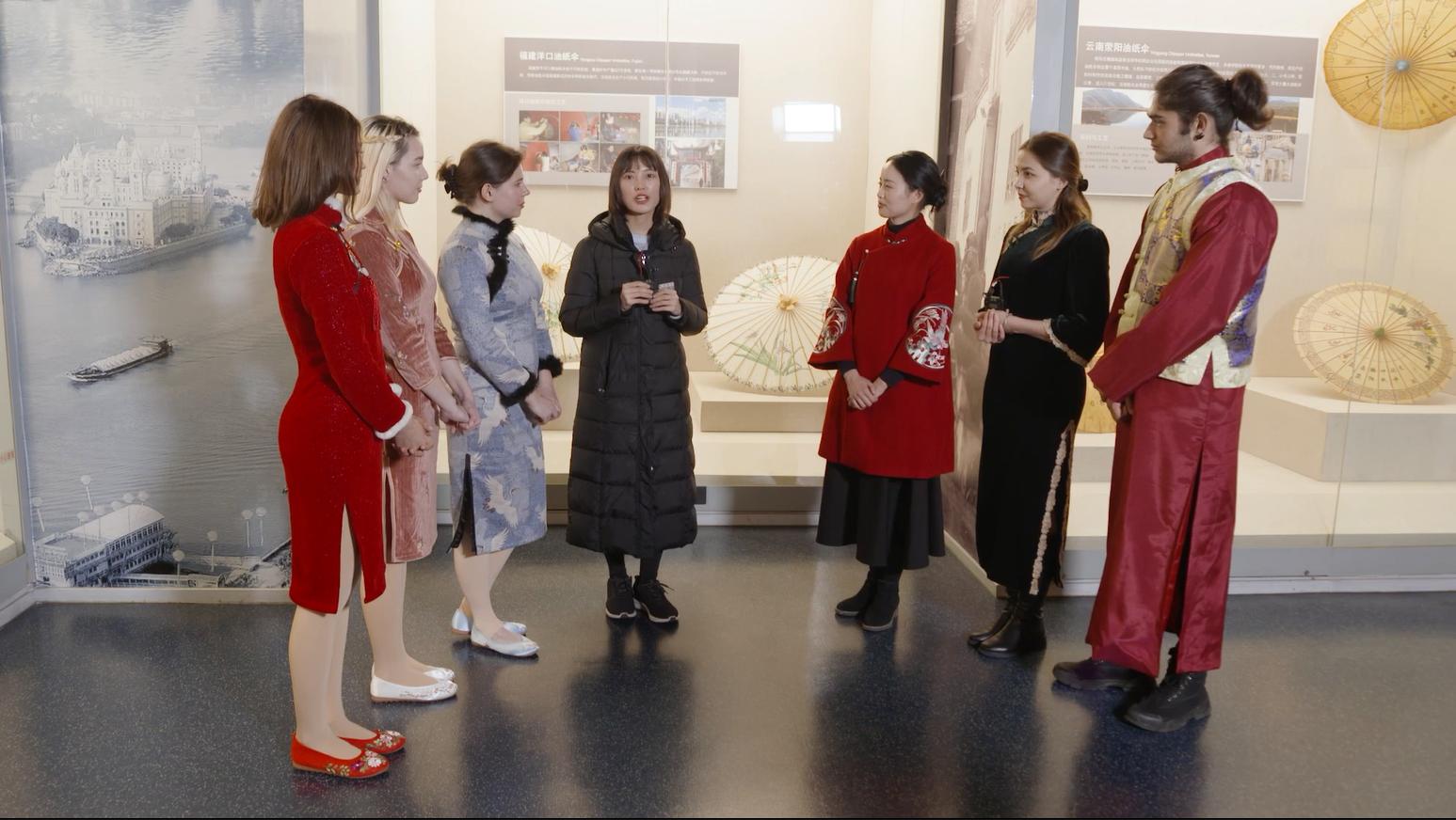 在中国丝绸博物馆,讲解员向留学生们介绍了丝绸之路的形成、发展和繁荣的历史,留学生们兴奋地在丝绸之路的地图上指出了自己的国家。