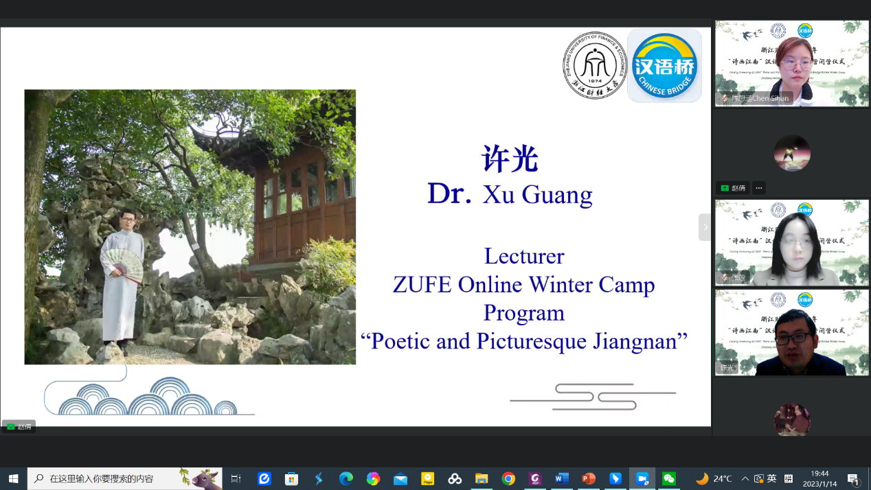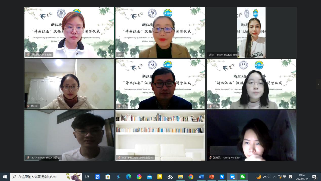 承办的教育部汉语桥线上冬令营“诗画江南”顺利闭营。项目团队老师、参加冬令营的各国学员参加闭营仪式。仪式由天美传媒