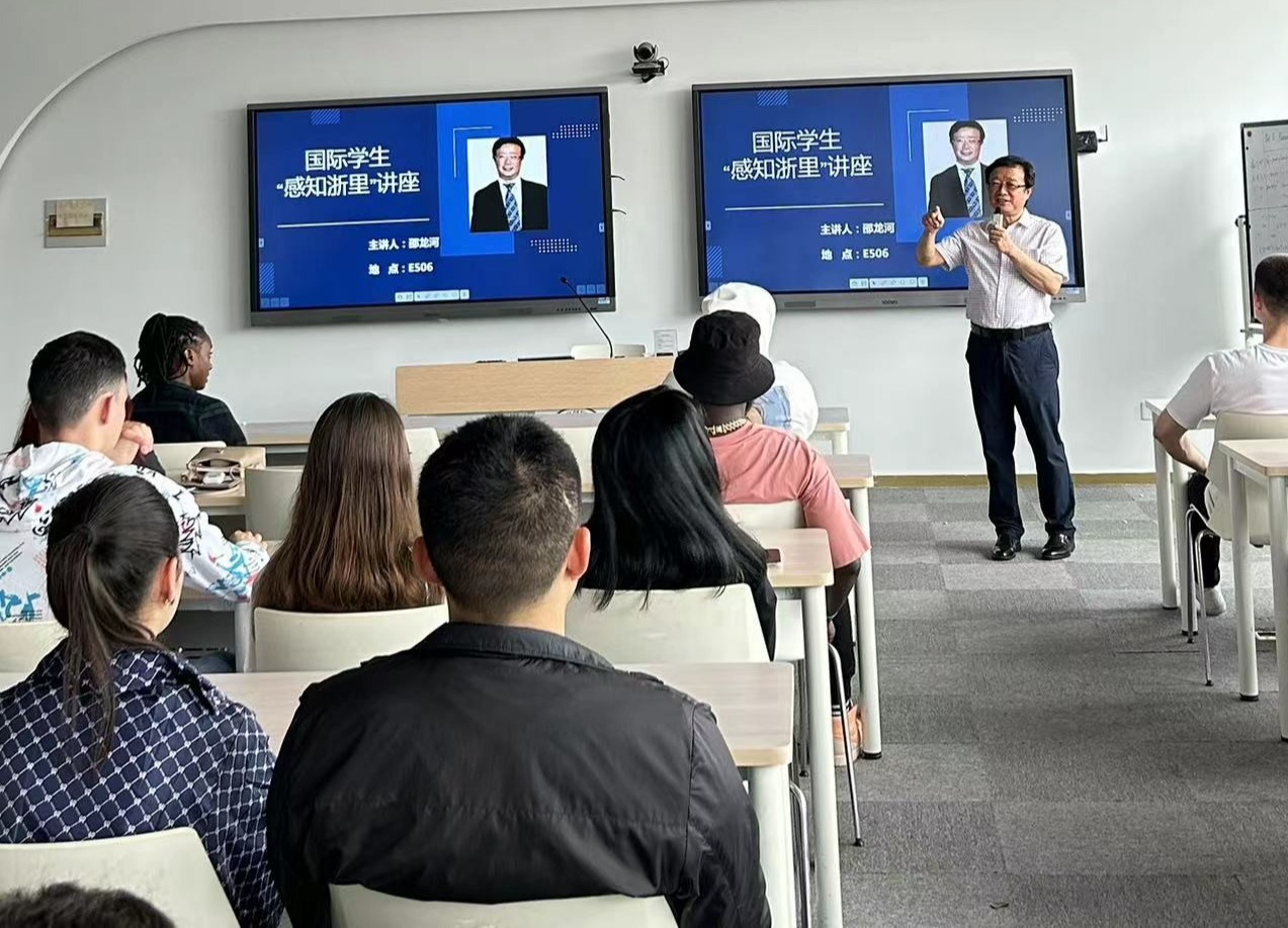 国际学生作题为“感知浙里”的专题讲座。境内相关专业的国际学生认真聆听了此次讲座。