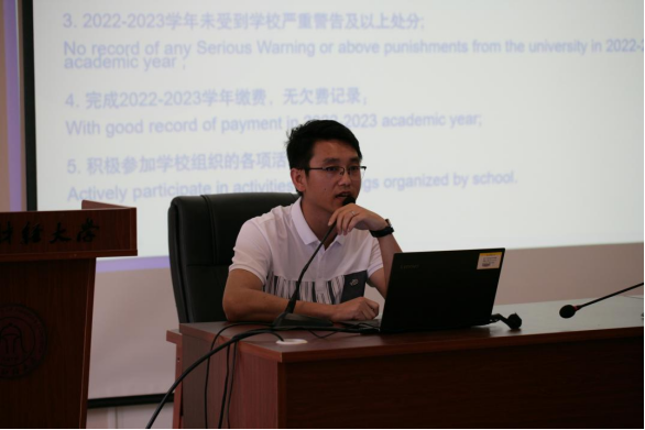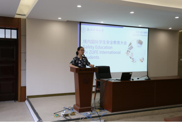留学生辅导员陈思涵介绍了国家出入境管理及留学生在华签证的管理相关规定,要求签证即将到期学生尽快办理续签,希望大家在暑假期间保护好自身安全,严格遵守国家法律法规和校规校纪。