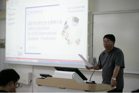 共同组织的2023-2024秋季学期安全教育活动在教学楼D206教室顺利举行,外籍教师、2023级全体国际新生和本学期入境返校的老生参加本次活动。