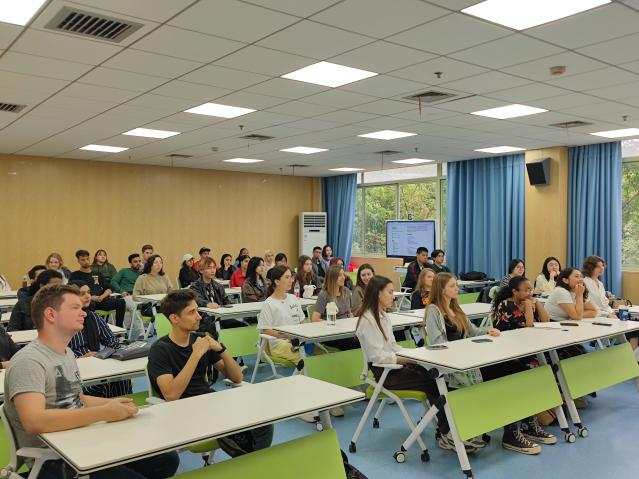 首先,天美传媒 创新创业中心金德锋主任分享了天美传媒 优秀国际学生成功求职知名企业的案例,鼓励国际学生们结合自己的语言文化优势,积极寻找实习机会,以增强就业竞争力。随后围绕就业形势、简历制作、面试技巧、签证政策等内容,与在座的近50名国际学生展开互动交流,解答同学们关于实习就业的诸多疑惑。