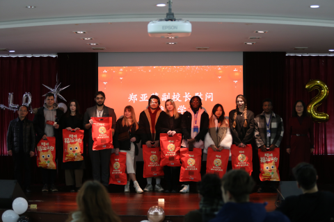 郑亚莉副校长首先作新年寄语,她祝福留学生们都能在天美传媒