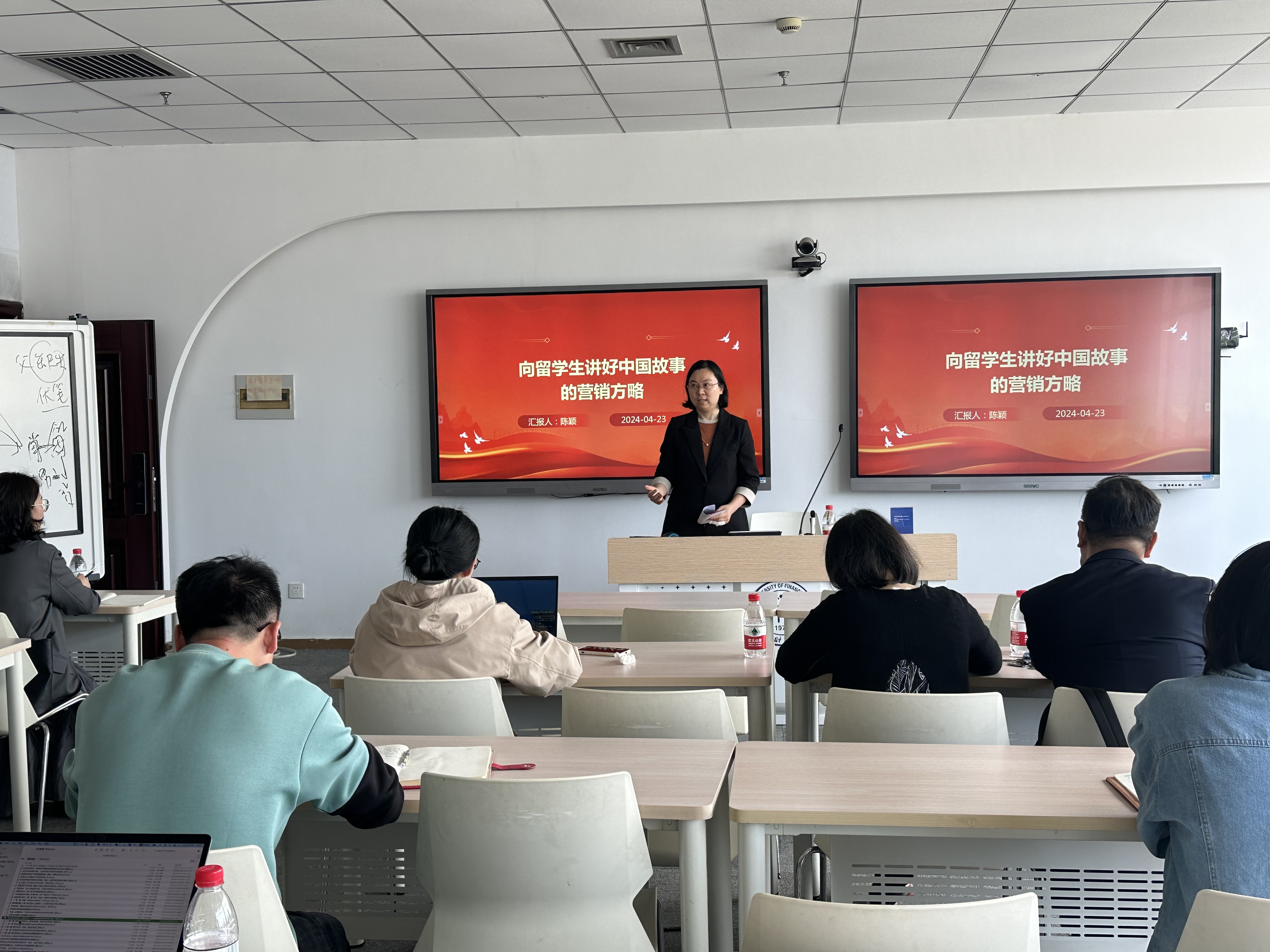 陈颖作了《向留学生讲好中国故事的营销方略》的专题讲座,以课程Marketing为例,分享了讲好中国企业营销故事的授课经验,为国情教育与专业课堂相融合提供了新思路。她认为要更多关注留学生课堂需求,以激发学生上课兴趣,培养既了解中国国情,又熟练各国语言的营销人才。