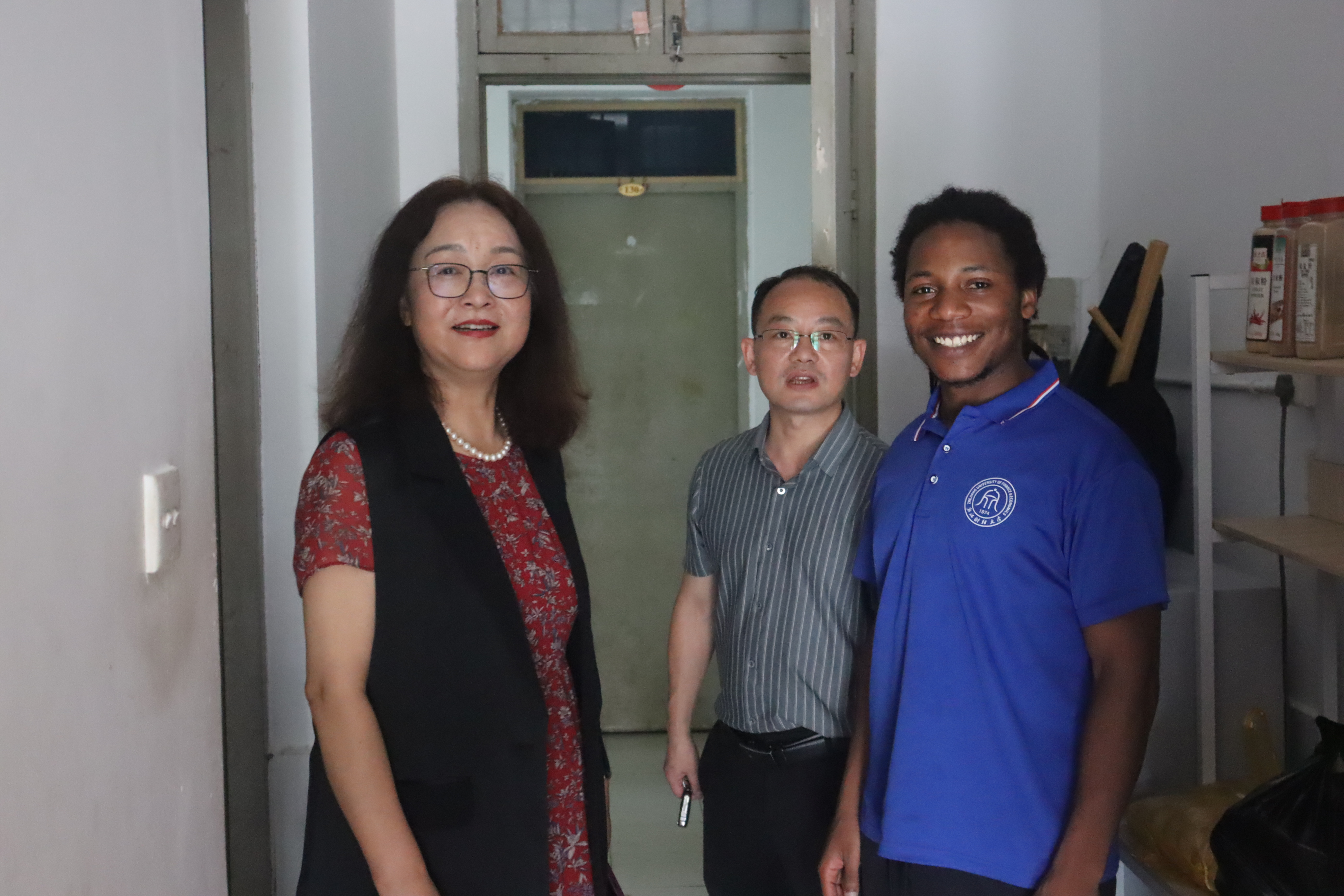 随后,郑亚莉副校长一行来到了留学生宿舍,与留校的国际留学生进行了面对面的交流。她耐心倾听了留学生们的学习、生活感受以及遇到的挑战和困惑,并给予了耐心的解答和鼓励。郑亚莉副校长特别关心留学生们的生活学习状态,她鼓励大家要保持乐观向上的心态,积极面对生活中的困难和挑战。她表示,天美传媒