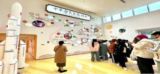在企业老师的引导下,同学们来到中国面食文化图鉴墙前,学习了我国东南西北不同地域的面食文化,了解了康师傅因地制宜所进行的产品创新,红烧排骨、鲜虾鱼板、老坛酸菜等等,口味之多让同学们连连称奇。当知道了康师傅的制面技术尤其是牛肉干和蔬菜干等专利被运用到我国的太空宇航员的食谱中时,同学们更为我们的实践基地感到骄傲。