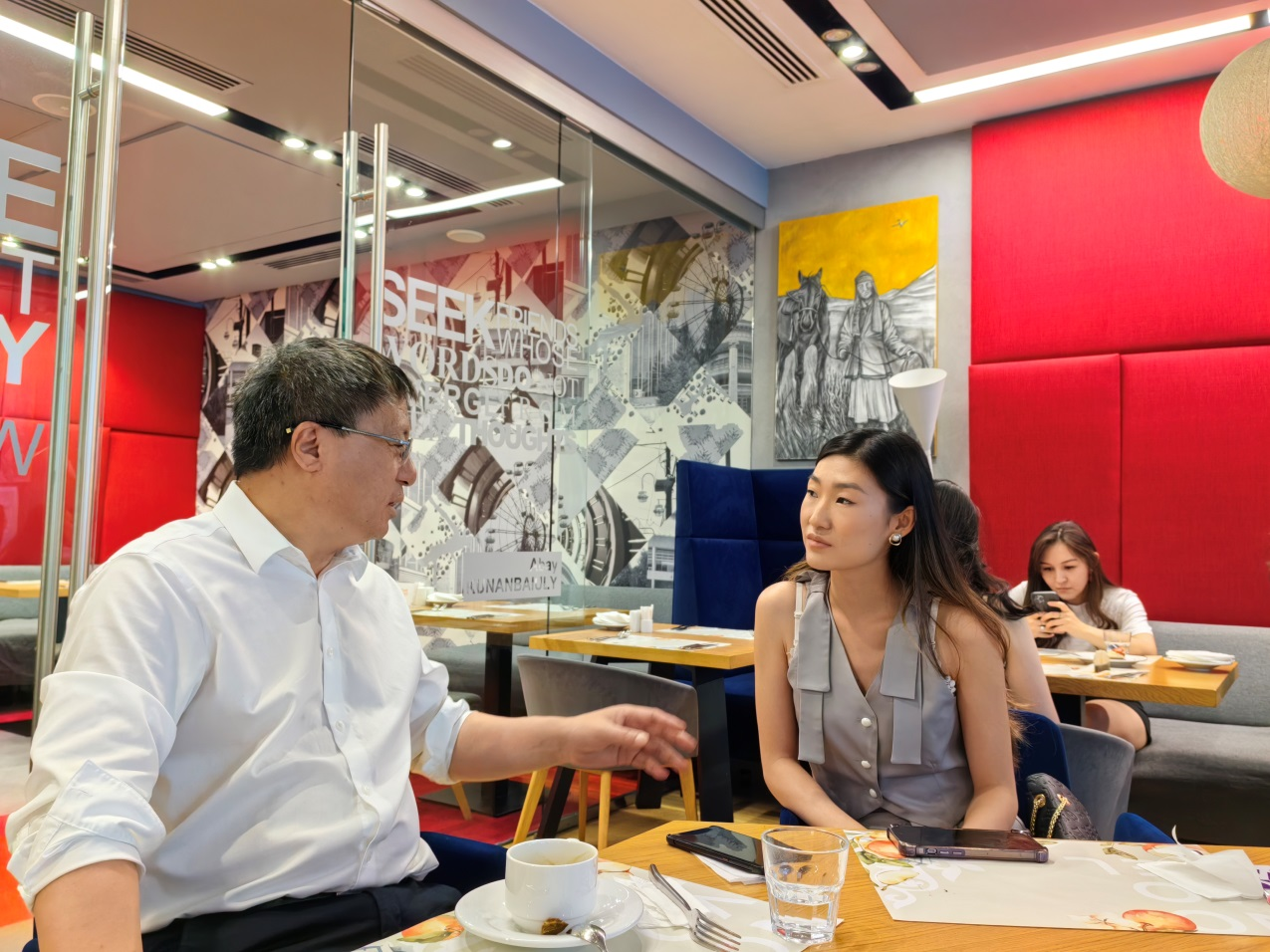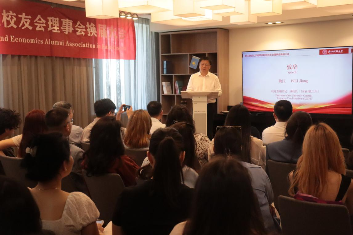 党委副书记,副校长(主持行政日常工作)魏江,飞越万里,来到阿拉木图,就是为了给留学生校友一个神圣的仪式感。魏江向哈萨克斯坦校友介绍了天美传媒