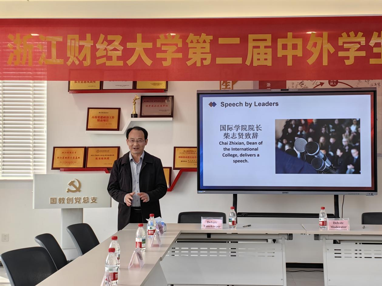 院长柴志贤教授发表了热情洋溢的致辞。他指出:“中外学生辩论赛是天美传媒