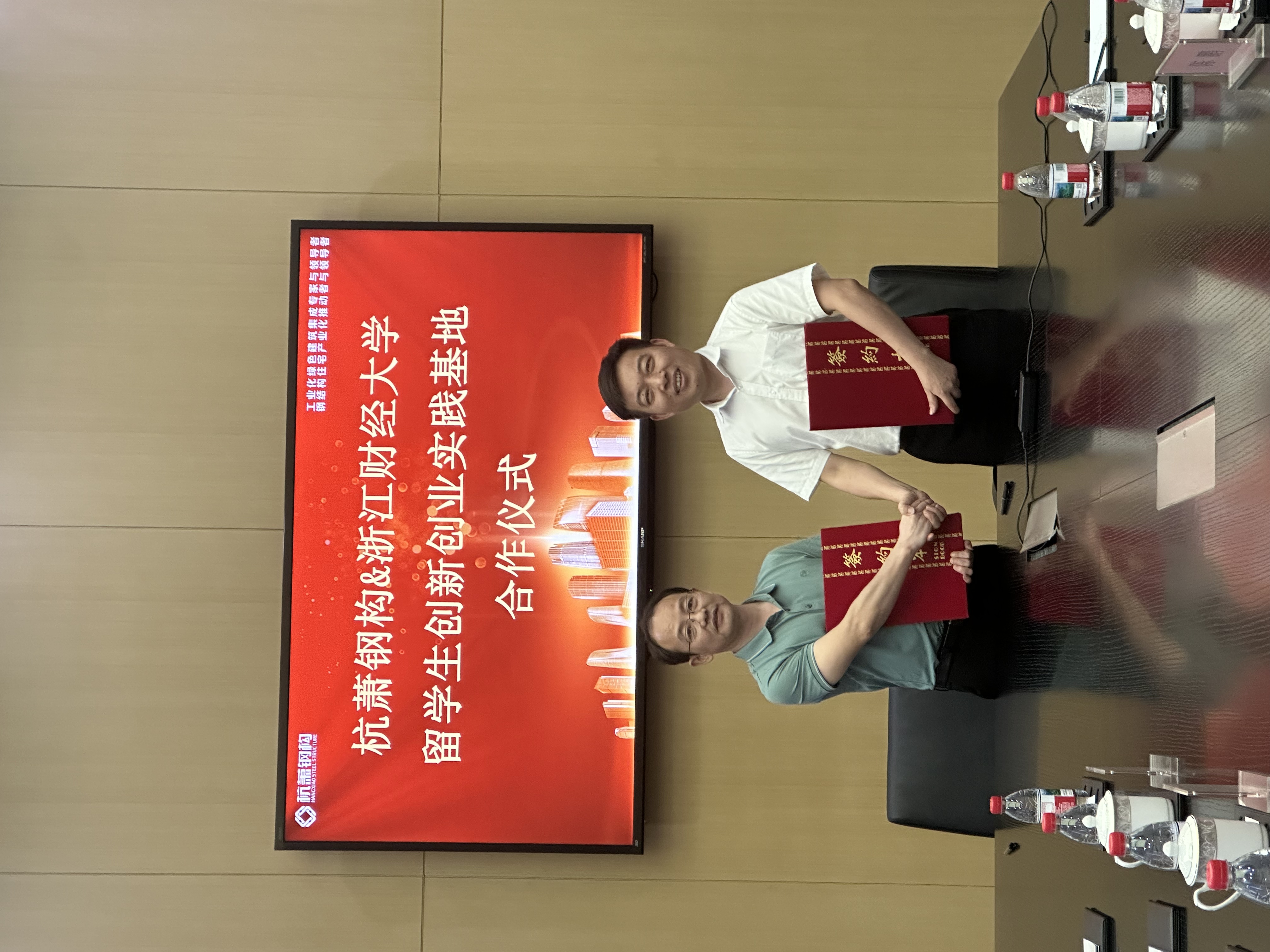 参观结束后,双方在会议室进行了深入的交流座谈。杭萧钢构副总裁董志武首先介绍了企业发展战略、人才需求以及对留学生创新创业人才培养的期望,表示愿意为留学生提供实践机会和平台,助力他们将理论知识与实践相结合,提升创新创业能力。接着,柴志贤介绍了天美传媒