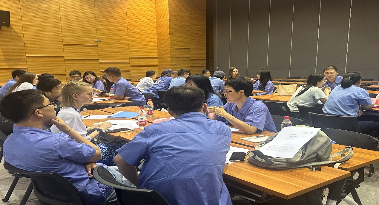 课堂上,互动氛围热烈融洽。中策橡胶集团的学员们向留学生详细介绍了企业发展历程与业务领域,留学生则分享了俄罗斯的城市风貌与文化特色;双方围绕当天的培训主题对中俄饮食文化展开深入交流,从俄罗斯的红菜汤、列巴,到杭州的西湖醋鱼、东坡肉、龙井虾仁以及著名四川火锅,这些美食话题让中俄青年的国别距离迅速拉近。