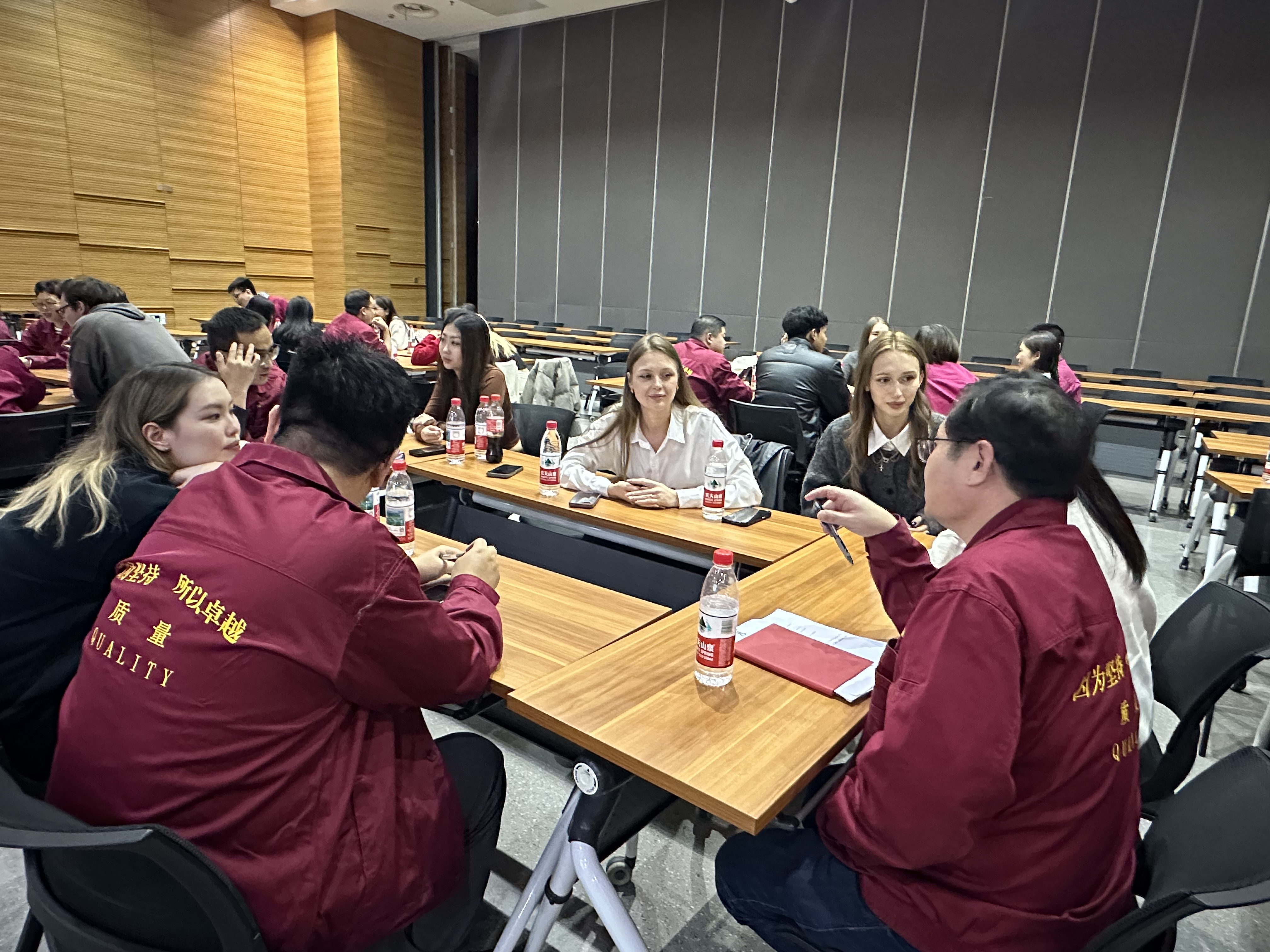 随后,来自泰国和巴基斯坦的同学化身“国家文化使者”,以精彩的演讲向企业方介绍了各自国家的风土人情、经济概况与市场潜力。双方围绕国际市场拓展、文化差异应对、本土化营销策略以及绿色可持续发展等议题,展开了深度交流。