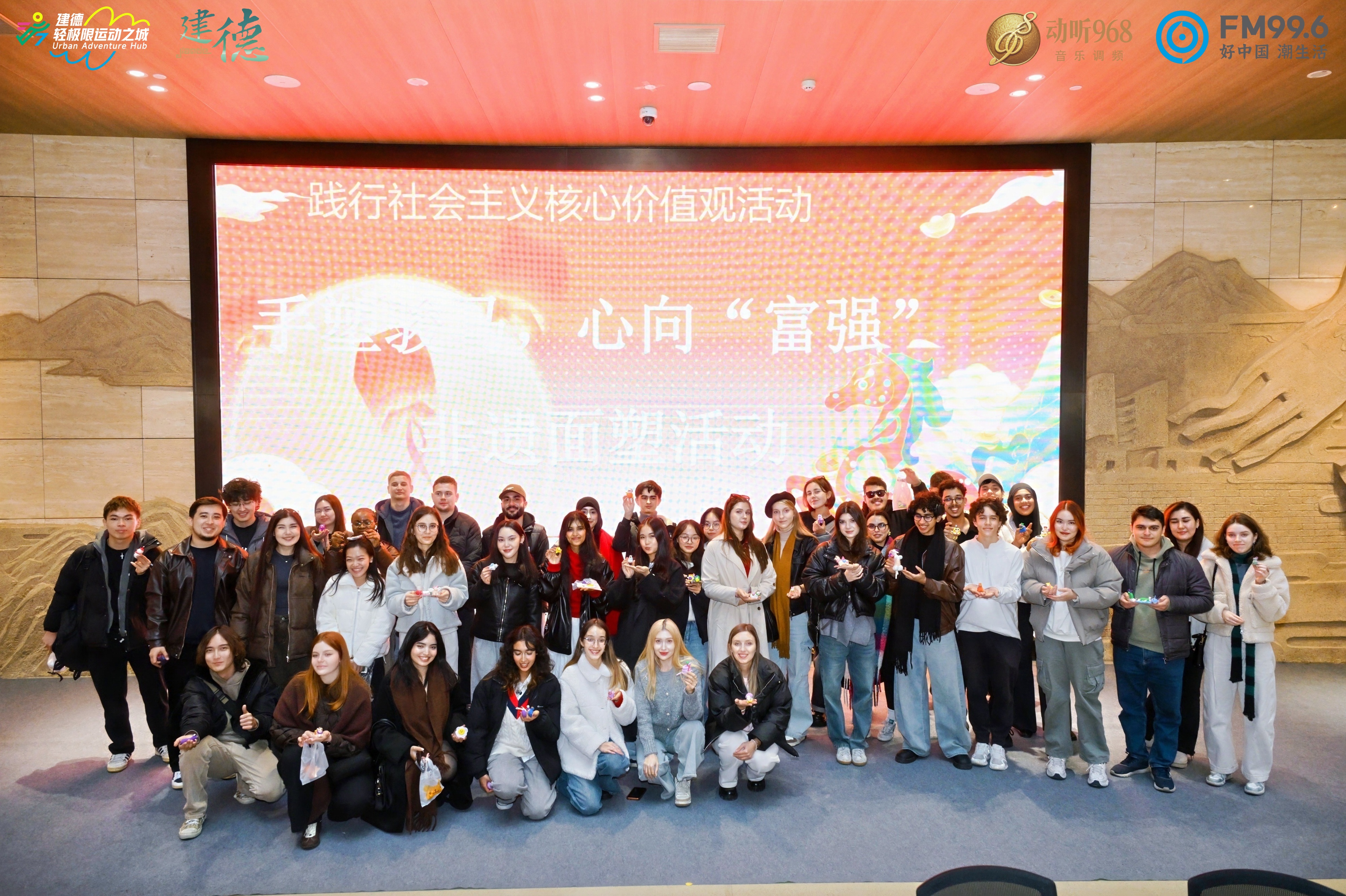 在讲解员的带领下,国际学生们沉浸式参观了建德博物馆,从新石器时代的文物到明清时期的民俗展品,系统了解了建德作为“钱塘江源头第一城”的历史脉络。随后进行的非遗面塑体验环节,将气氛推向高潮。在非遗传承人的细致指导下,留学生们亲手揉捏、塑形、上色,将普通的面团化为一个个生动的小物件,在实践中领略中国传统手工艺的独特魅力。