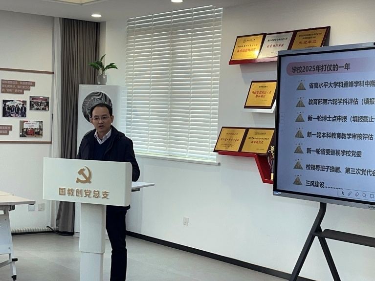 3月7日上午,国教创党总支在唯实楼519会议室召开党风廉政专题党课暨2025年第一次全体教职工大会。会议由党总支书记黄金娟主持,全体教职工参加。会议以“筑牢廉洁防线 护航教育发展”为主题,结合党风廉政建设与年度重点工作部署,进一步凝聚共识、明确方向。