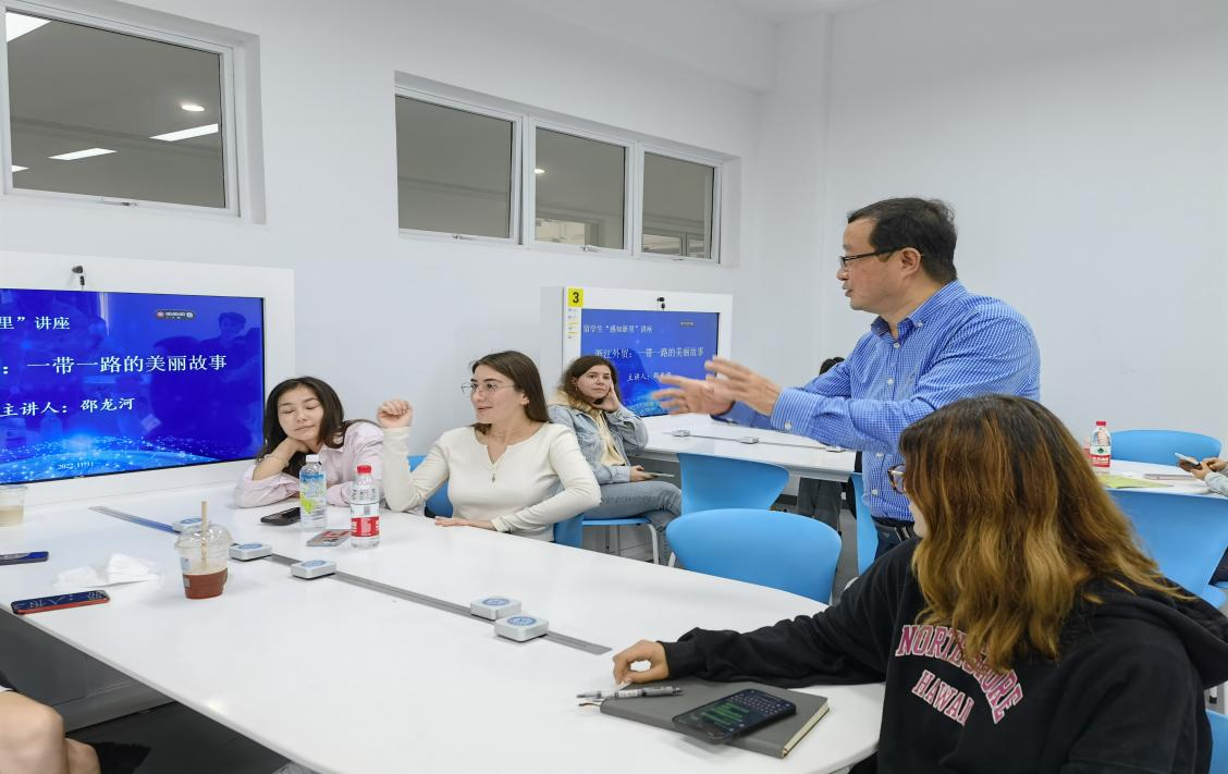 作为浙江外贸快速发展的推动者、亲历者和见证者,邵龙河沿着“一带一路”,与留学生分享了大量浙江外贸发展的精彩故事,让留学生感受到浙江制造的独特魅力与浙江外贸的高水平竞争力。邵龙河还特别对留学生们提出建议,希望留学生们做好自己的职业生涯规划,利用跨境电商平台等,积极推动与中国投资、贸易等商务往来,做中外友好交流合作的桥梁。整个报告语言幽默风趣,内容生动,主动提问,热烈讨论,现场气氛异常活跃。留学生们纷纷表示,报告非常有启发,希望以后能在中国就业或自主创业,搭上中国发展的快车,积极为“一带一路”发展作贡献。