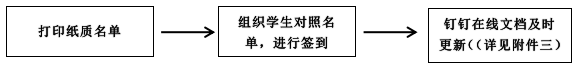 3.线下授课的老师:利用纸质版课程考勤名单进行签到,并在课程考勤名单(钉钉在线文档)中及时更新。