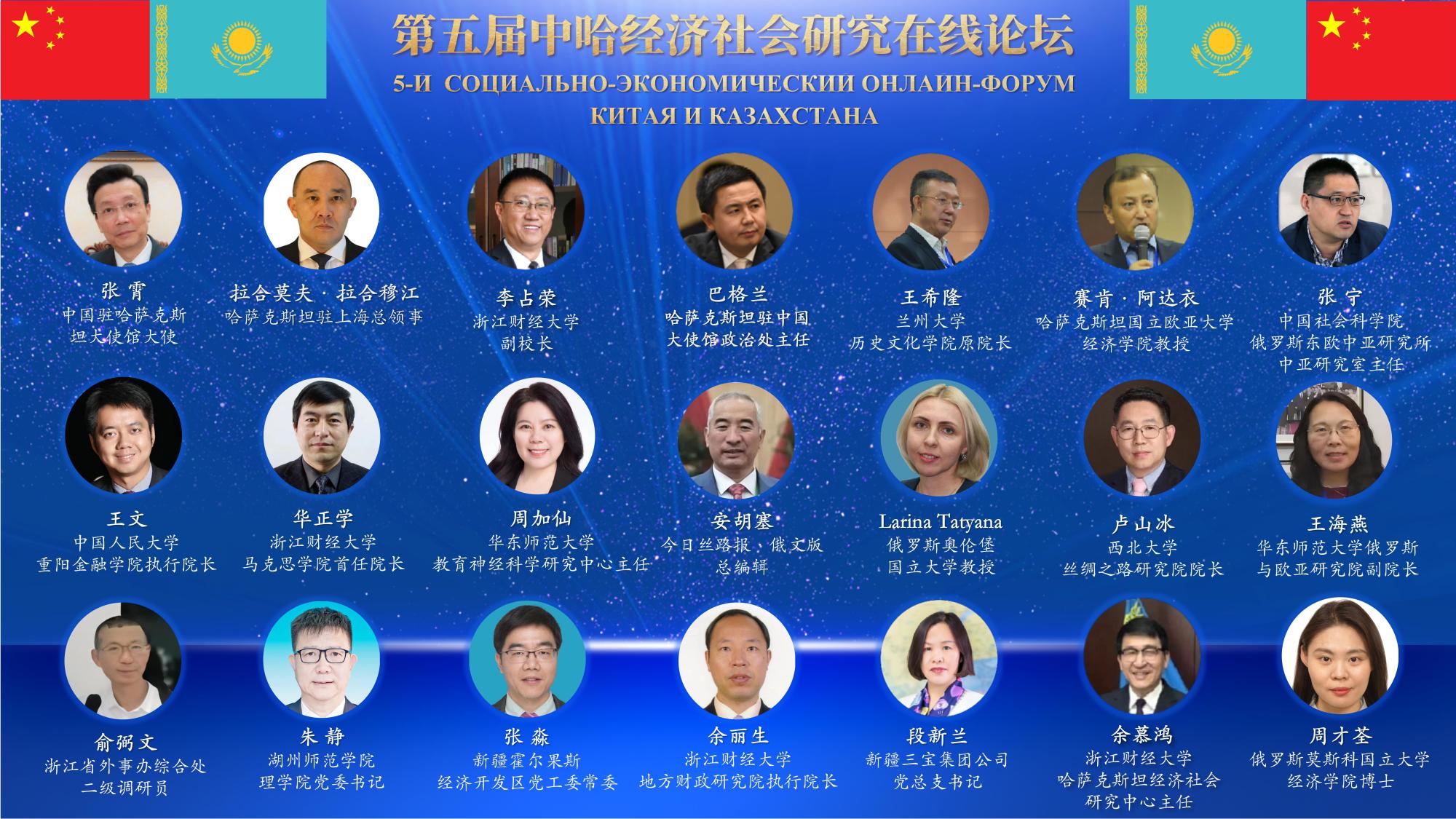 、浙江省人民政府外事办公室、中国新闻社新疆分社/丝路新观察全媒体、新疆霍尔果斯经济开发区、新疆三宝实业集团有限公司的近20名专家、企业家汇聚云端,围绕论坛主题展开了广泛而深入的研讨。参加本次在线论坛的还有来自来自哈萨克斯坦阿斯塔纳国际金融中心、哈萨克斯坦YouChina公司、哈萨克斯坦国立欧亚大学、俄罗斯国立莫斯科大学、上海政法天美传媒