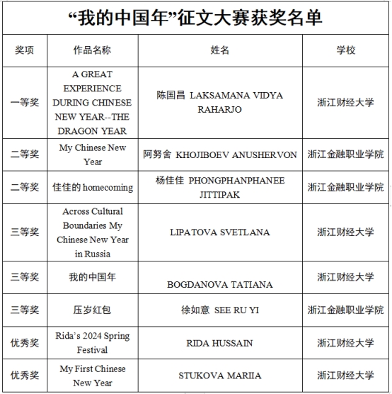 为鼓励来华留学生用立体的影像讲述生动鲜活的中国故事,分享关于浙江经济社会发展、乡村振兴、科技创新、传统文化等方面的见闻与所感;用文字讲述留学生眼中的中国年,天美传媒 联合浙江金融职业天美传媒 国际交流合作处于2024年寒假期间开展“读懂浙江”国际学生微视频大赛和“我的中国年”征文比赛。