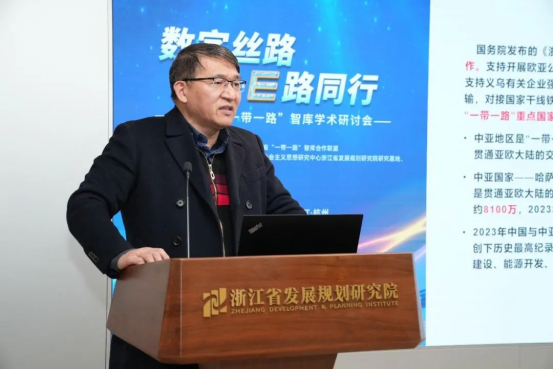 中亚研究院院长余慕鸿教授应邀在研讨会上作了题为“卖中亚,买中亚:深化浙江-中亚国家经贸合作的思考与对策建议”的主旨报告。余慕鸿教授详细阐述了我国向中亚双边开放的意义、推进向中亚双边开放的行动建议。立足浙江,系统总结了我省面向中亚高水平开放的突出优势,提出浙江与中亚国家贸易合作应把握的四大新机遇和实现高质量发展的三方面对策建议,受到与会代表的一致好评。