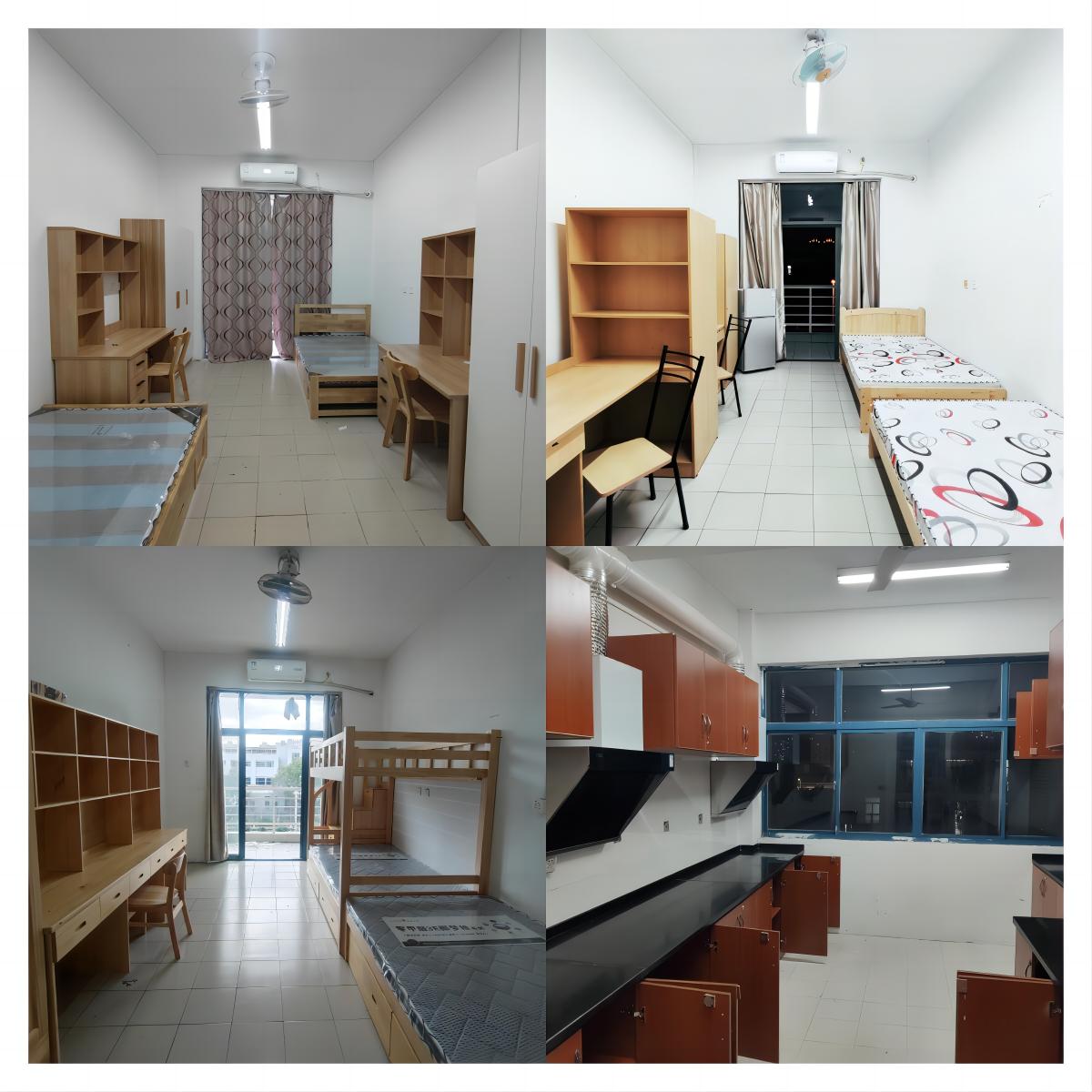 天美传媒 为留学生提供校内宿舍,宿舍分双人间和三人间两种房型,每个房间配备床、床垫、桌椅、衣柜、独立卫生间、空调、洗衣机、热水、冰箱等设施,楼栋内有直饮水机、公共厨房,并配置橱柜、油烟机等,供日常烹饪、就餐使用。